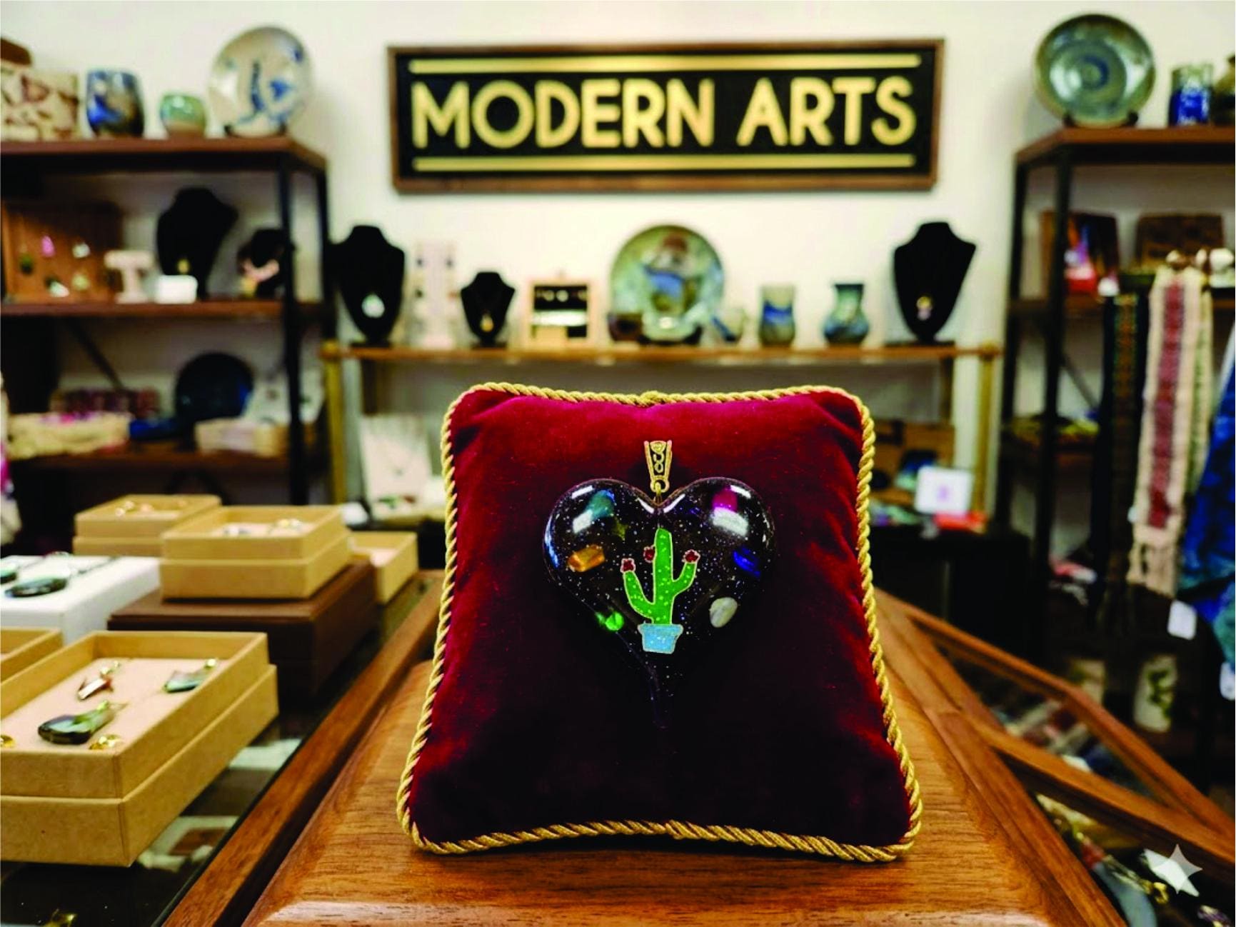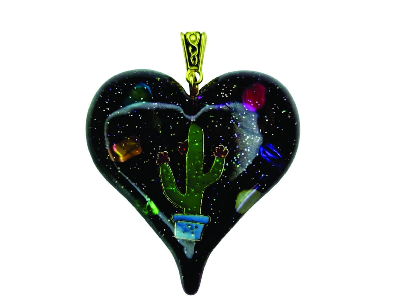 This is a pretty and unique jewelry heart shape. It is handmade by Modern Arts! We used a chameleon powder in the resin and mixed three colors and created a swirled design in the heart. The chameleon powder has color changing properties so when light hits the surface you'll see different colors. The pendant comes with 16" leather rope.