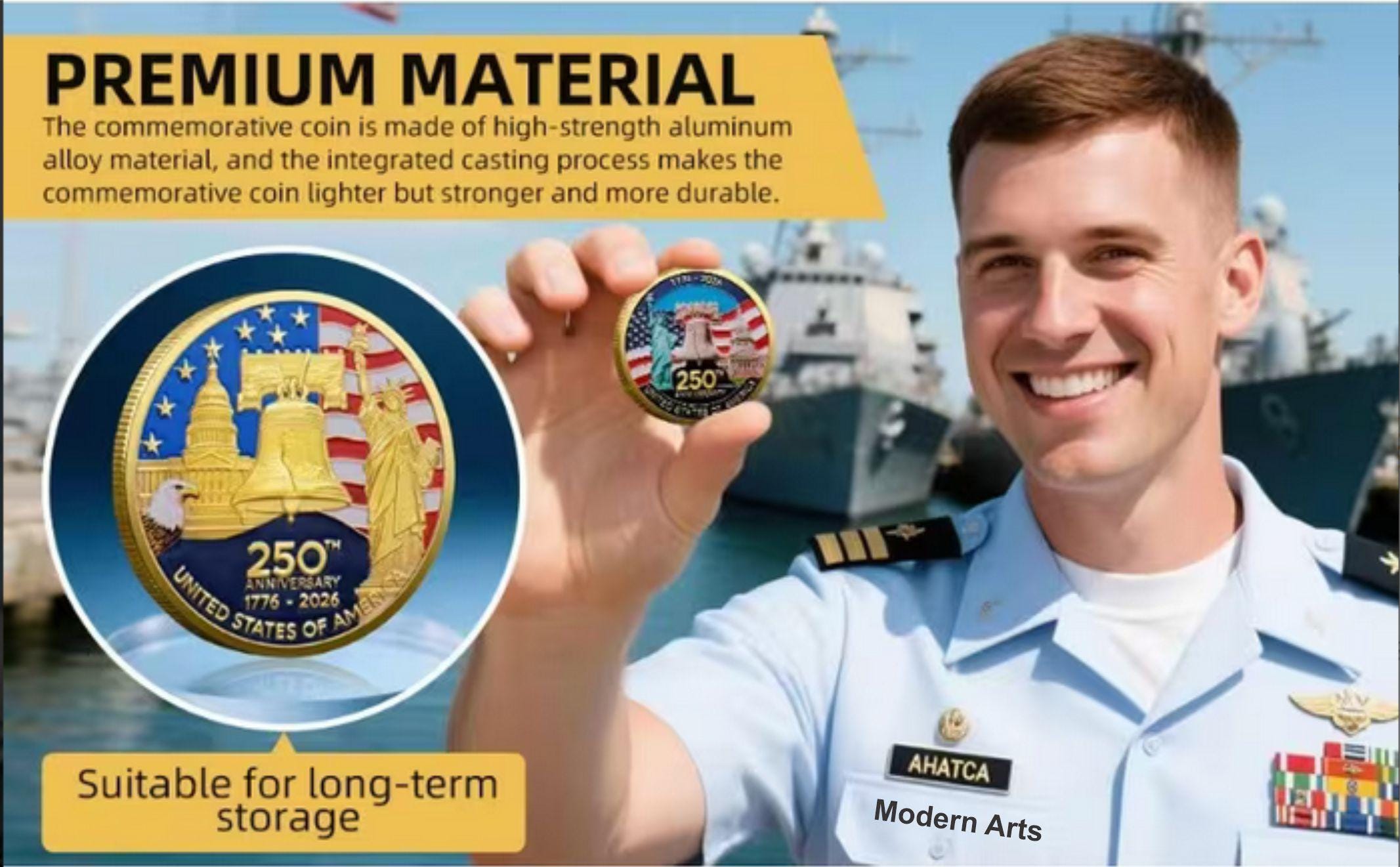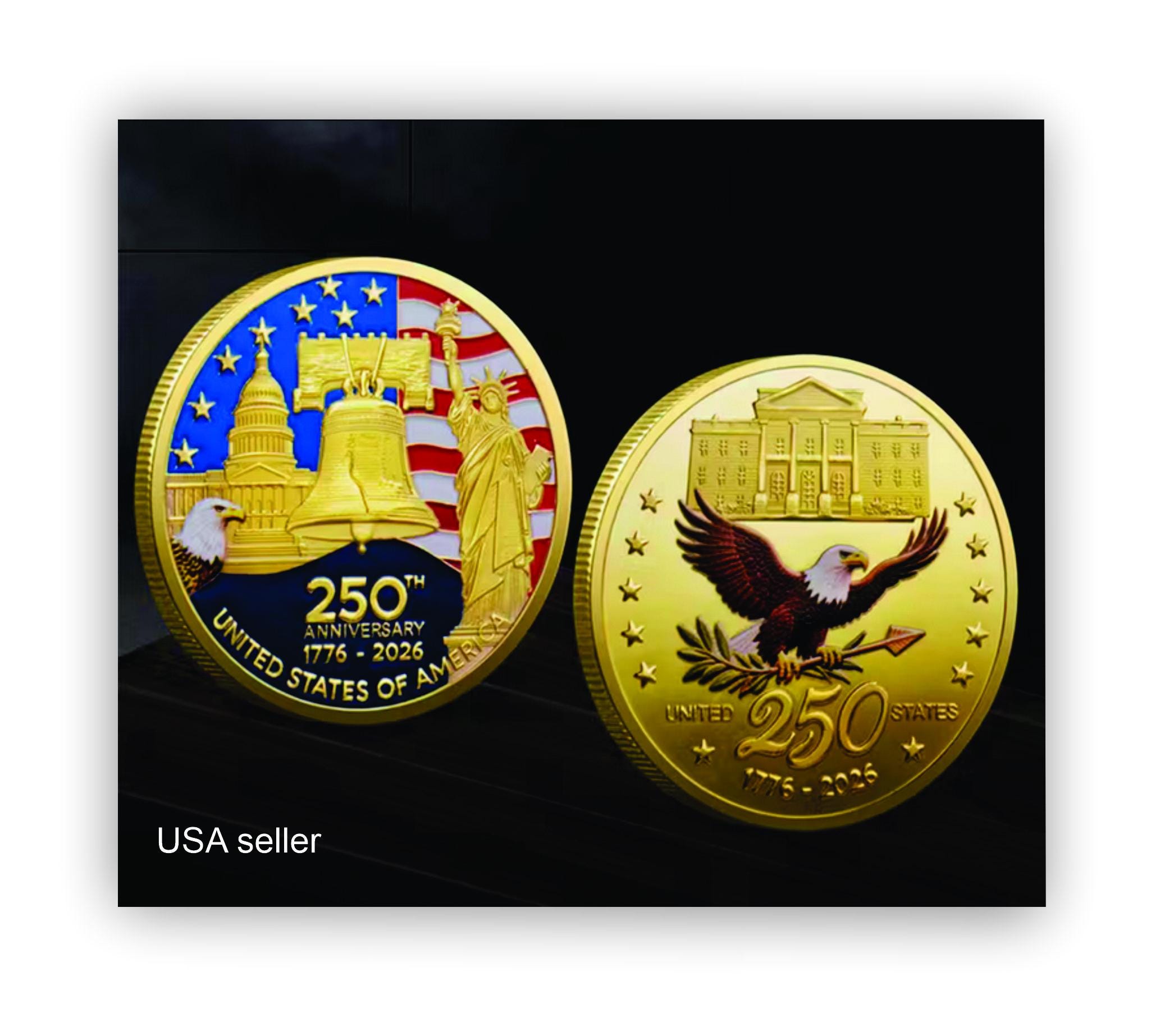 Celebrate America’s 250th anniversary with this beautifully crafted commemorative coin, a timeless keepsake honoring the nation’s proud history and bright future. Each coin comes elegantly presented in a protective coin holder and a premium gift box, making it ready to display or give as a thoughtful present. Perfect for collectors, patriots, or anyone who loves American history, this coin is not just a symbol of heritage but also the right gift at the right price.
