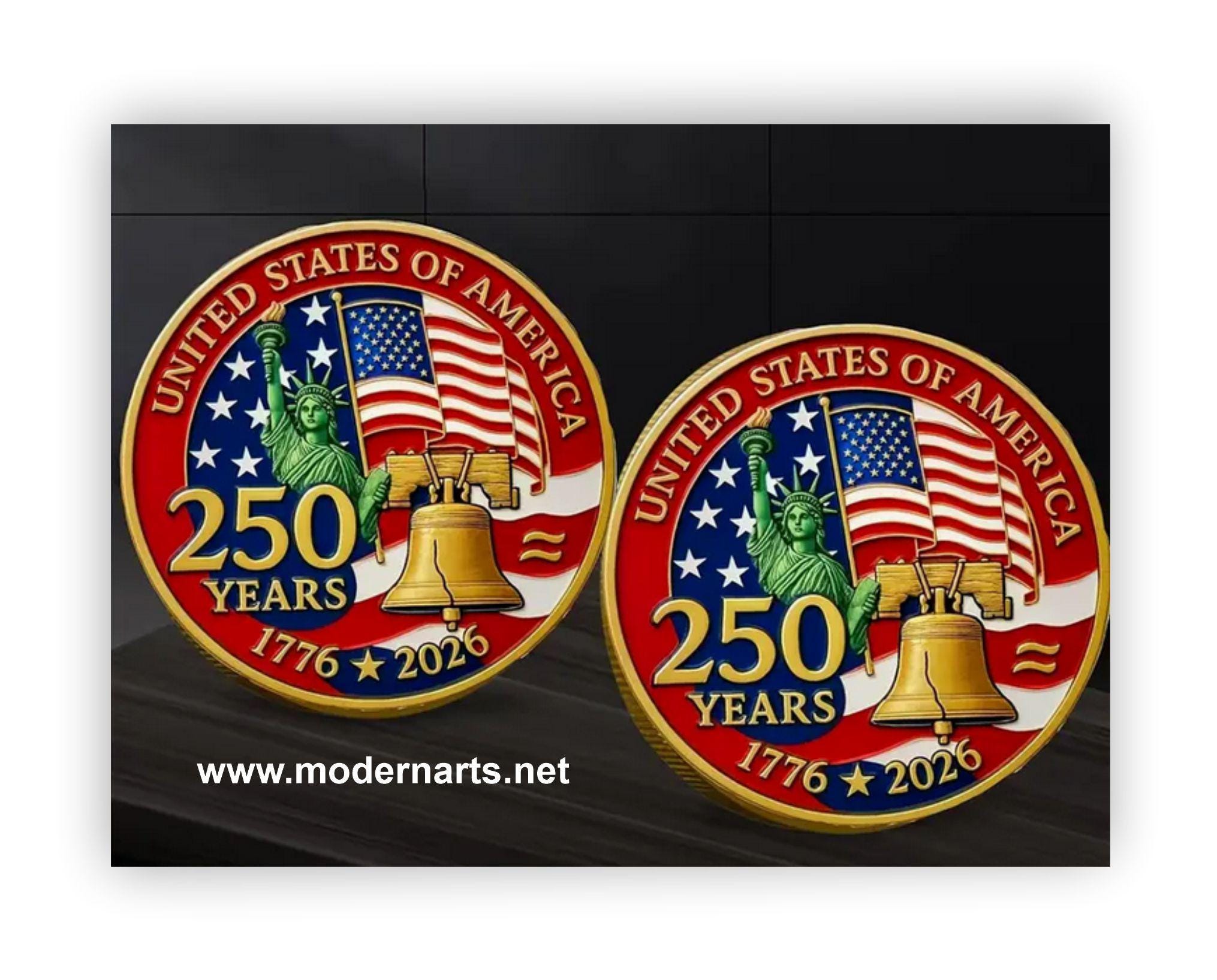 Celebrate America’s 250th anniversary with this beautifully crafted commemorative coin, a timeless keepsake honoring the nation’s proud history and bright future. Each coin comes elegantly presented in a protective coin holder and a premium gift box, making it ready to display or give as a thoughtful present. Perfect for collectors, patriots, or anyone who loves American history, this coin is not just a symbol of heritage but also the right gift at the right price.
