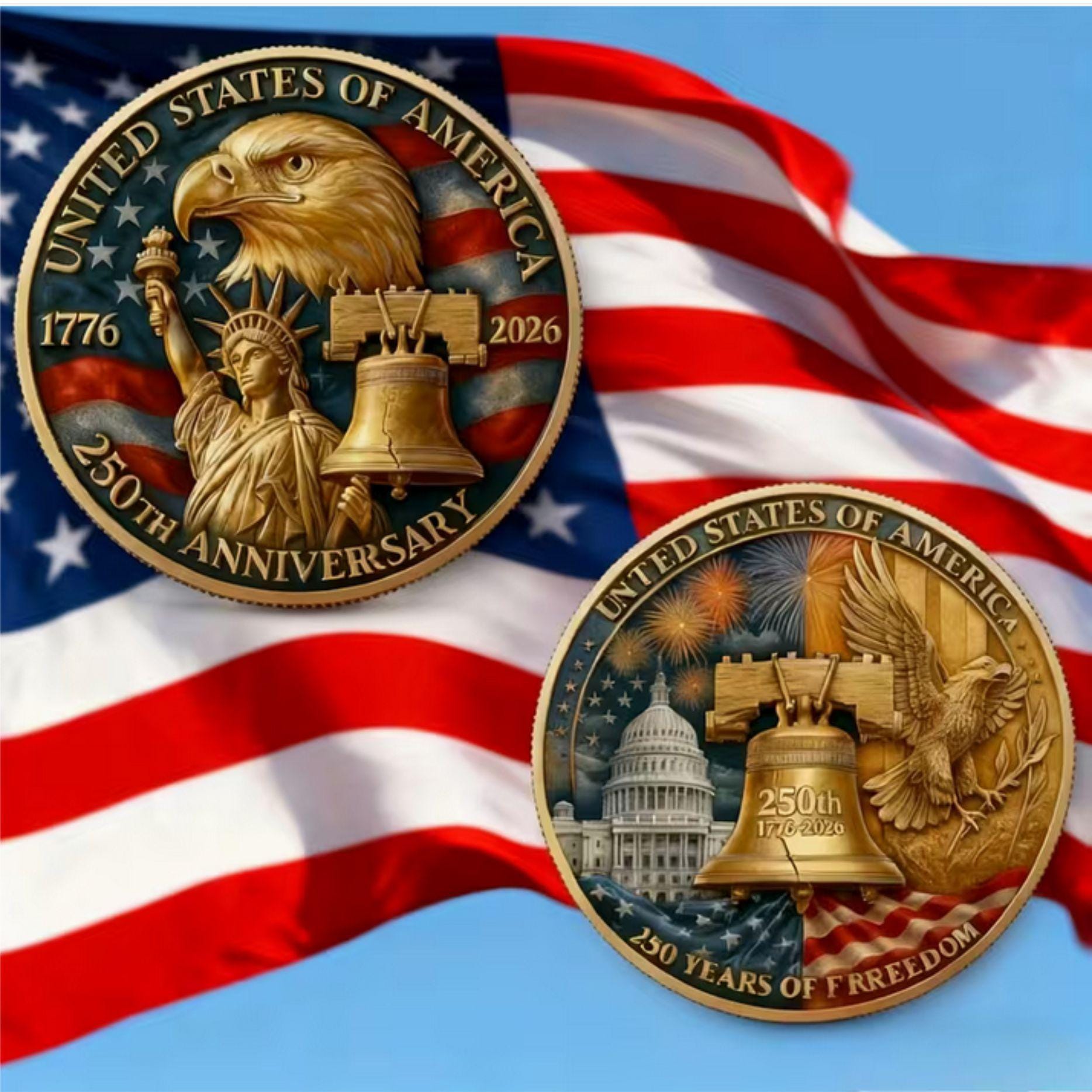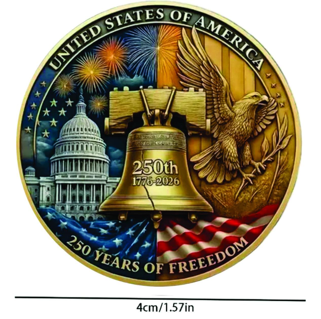 Celebrate America’s 250th anniversary with this beautifully crafted commemorative coin, a timeless keepsake honoring the nation’s proud history and bright future. Each coin comes elegantly presented in a protective coin holder and a premium gift box, making it ready to display or give as a thoughtful present. Perfect for collectors, patriots, or anyone who loves American history, this coin is not just a symbol of heritage but also the right gift at the right price. Coin size is 40mm/1.57"