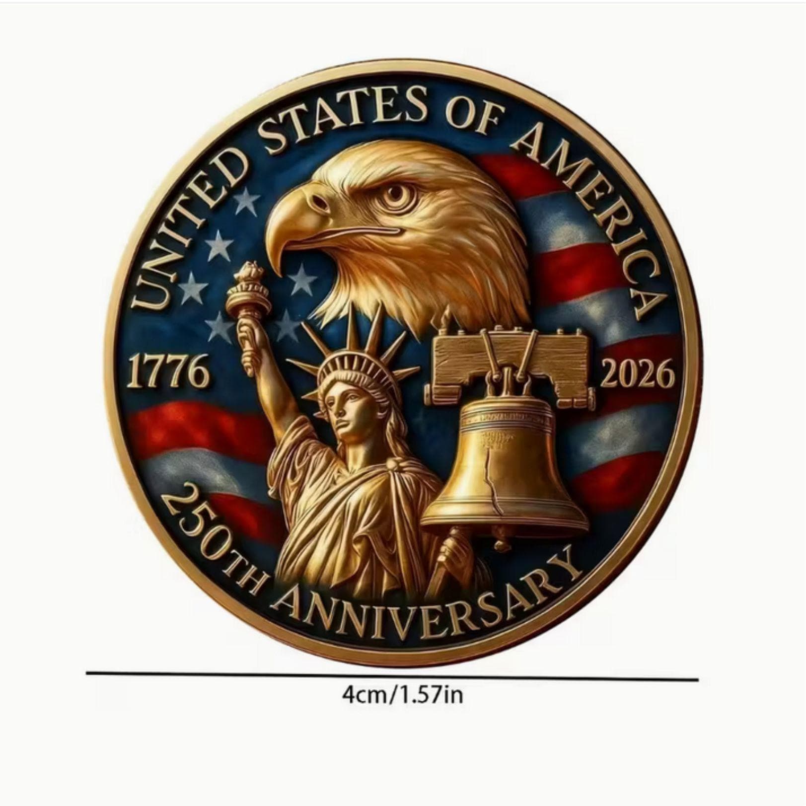 Celebrate America’s 250th anniversary with this beautifully crafted commemorative coin, a timeless keepsake honoring the nation’s proud history and bright future. Each coin comes elegantly presented in a protective coin holder and a premium gift box, making it ready to display or give as a thoughtful present. Perfect for collectors, patriots, or anyone who loves American history, this coin is not just a symbol of heritage but also the right gift at the right price.