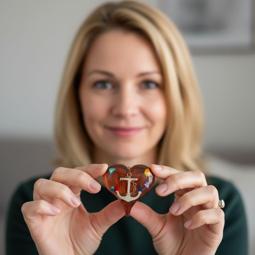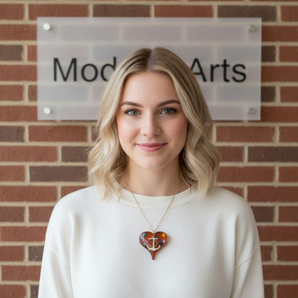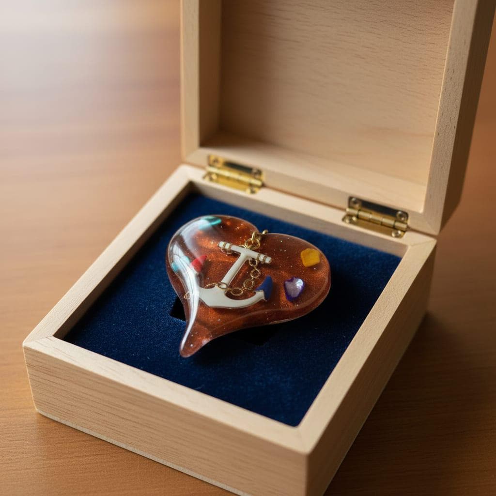 This is a pretty and unique jewelry heart shape. It is handmade by Modern Arts! We used a chameleon powder in the resin and mixed three colors and created a swirled design in the heart. The chameleon powder has color changing properties so when light hits the surface you'll see different colors. The pendant comes with 16" leather rope.