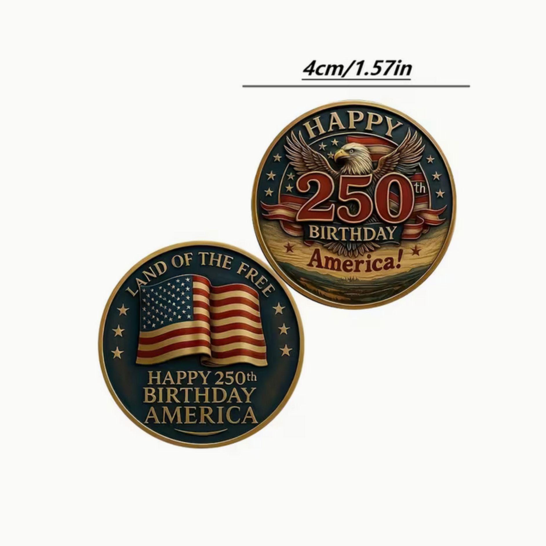 Celebrate America’s 250th anniversary with this beautifully crafted commemorative coin, a timeless keepsake honoring the nation’s proud history and bright future. Each coin comes elegantly presented in a protective coin holder and a premium gift box, making it ready to display or give as a thoughtful present. Perfect for collectors, patriots, or anyone who loves American history, this coin is not just a symbol of heritage but also the right gift at the right price. Coin size is 40mm/1.57"