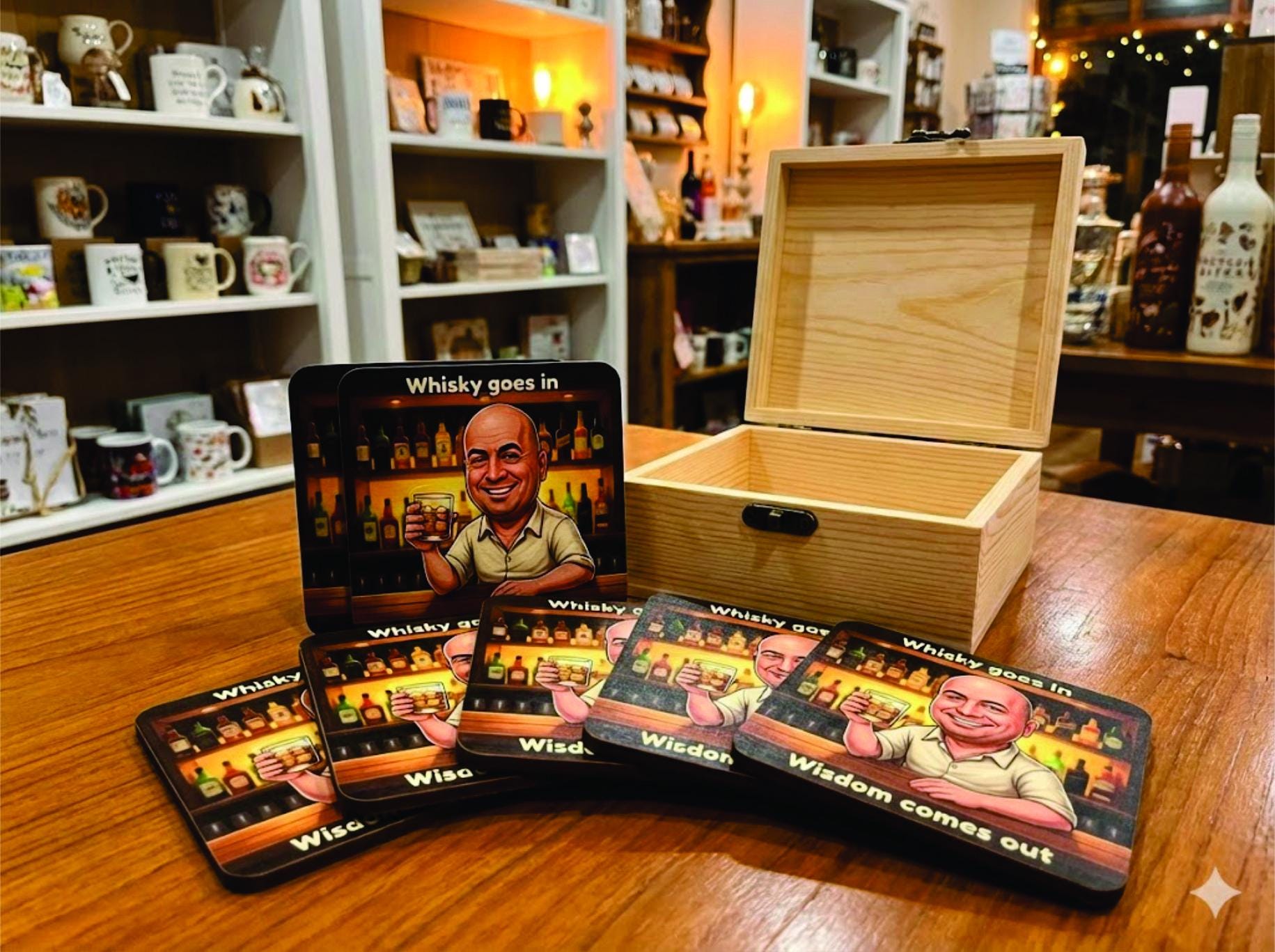 Surprise your loved ones with a gift that’s truly one of a kind a handmade customized caricature coaster set, beautifully laser printed and presented in an elegant wooden gift box. Each set includes six premium coasters featuring a personalized caricature created just for you, turning cherished memories into functional art. Simply place your order and send us your favorite photo; we’ll transform it into a detailed sketch and share it with you for final approval before production, ensuring every detail captures your personality perfectly. Thoughtful, creative, and completely unique, this is more than a gift it’s a lasting keepsake. Be special. Be unforgettable. Choose gifts that tell a story. 3 1/2 x 3 1/2" 85mm with resin on top (set of 6).